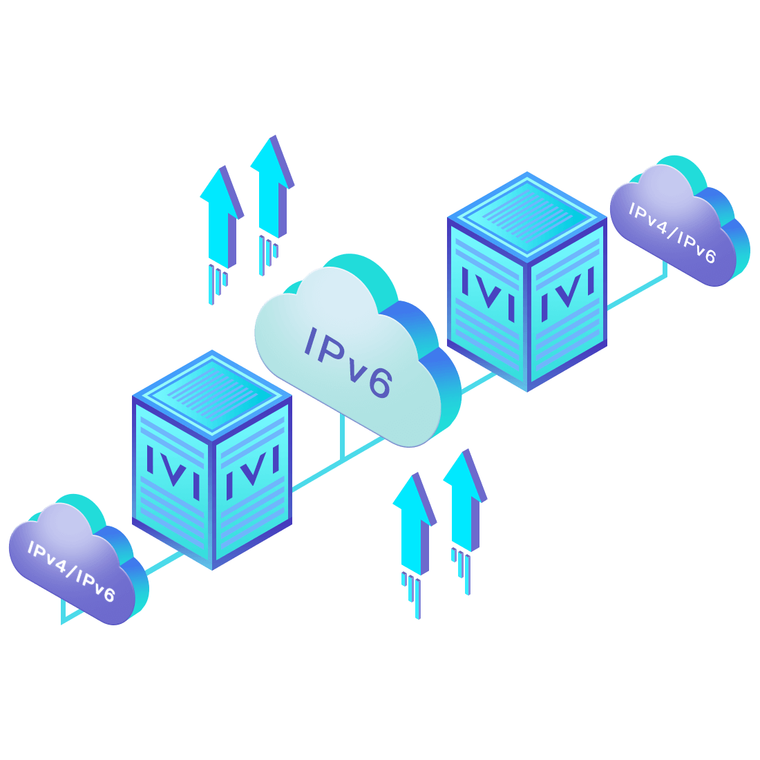 對正在進行IPv6整體升級規劃的運營商,應用IPv6升級方案2.5,通過IVI無狀態翻譯技術和純IPv6接入網絡,為雙棧客戶端和雙棧服務器提供連通服務。